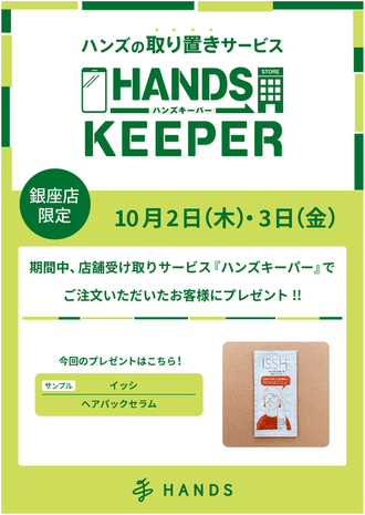 【銀座店限定】ハンズキーパーご利用キャンペーン(10/2~10/3)
